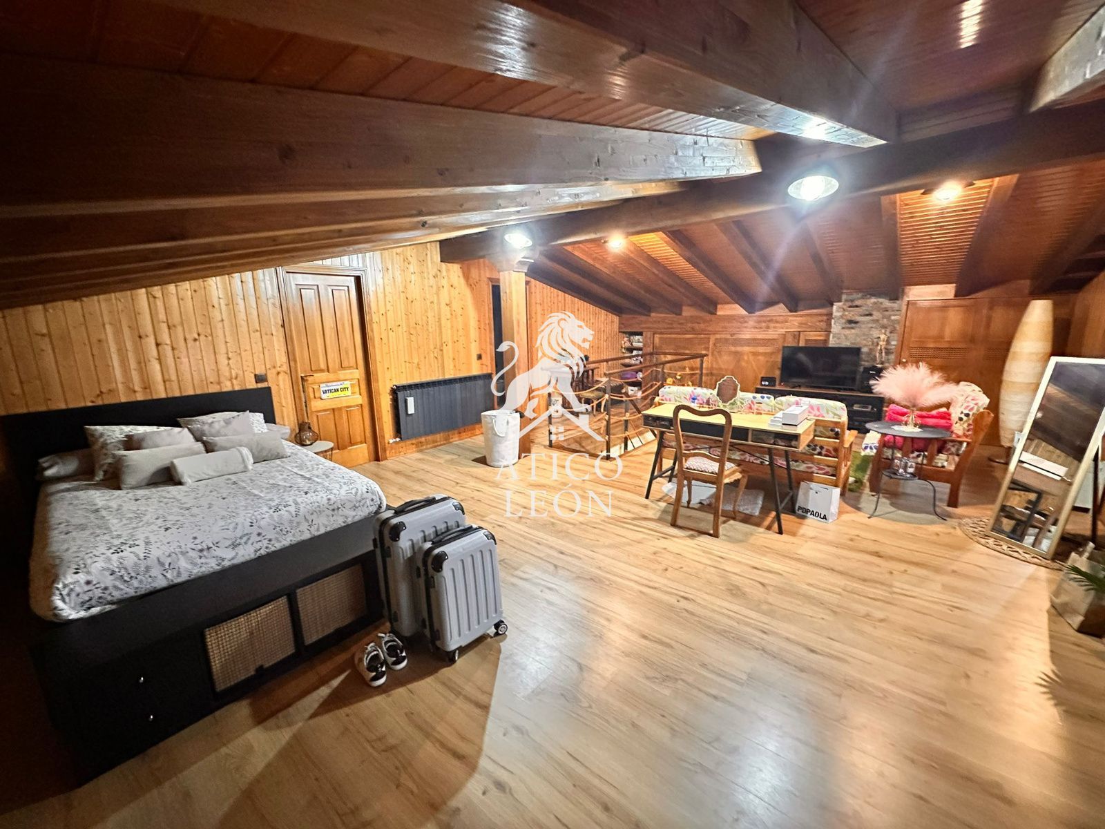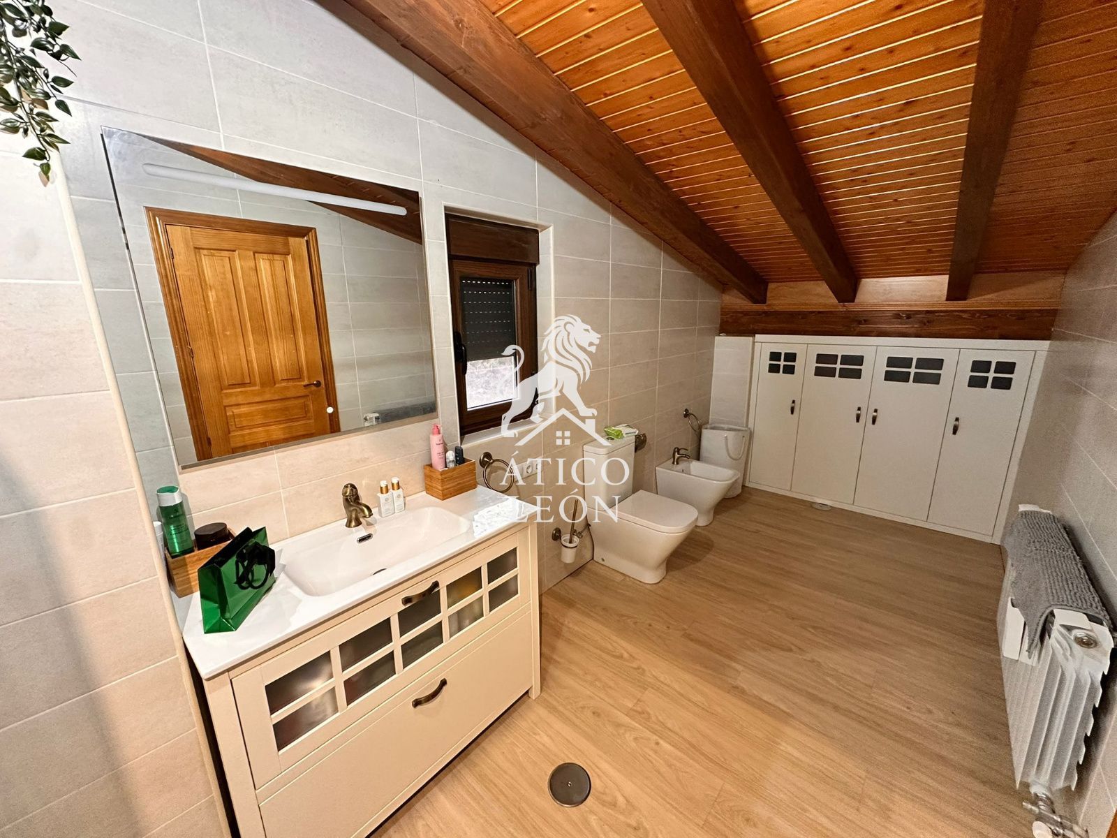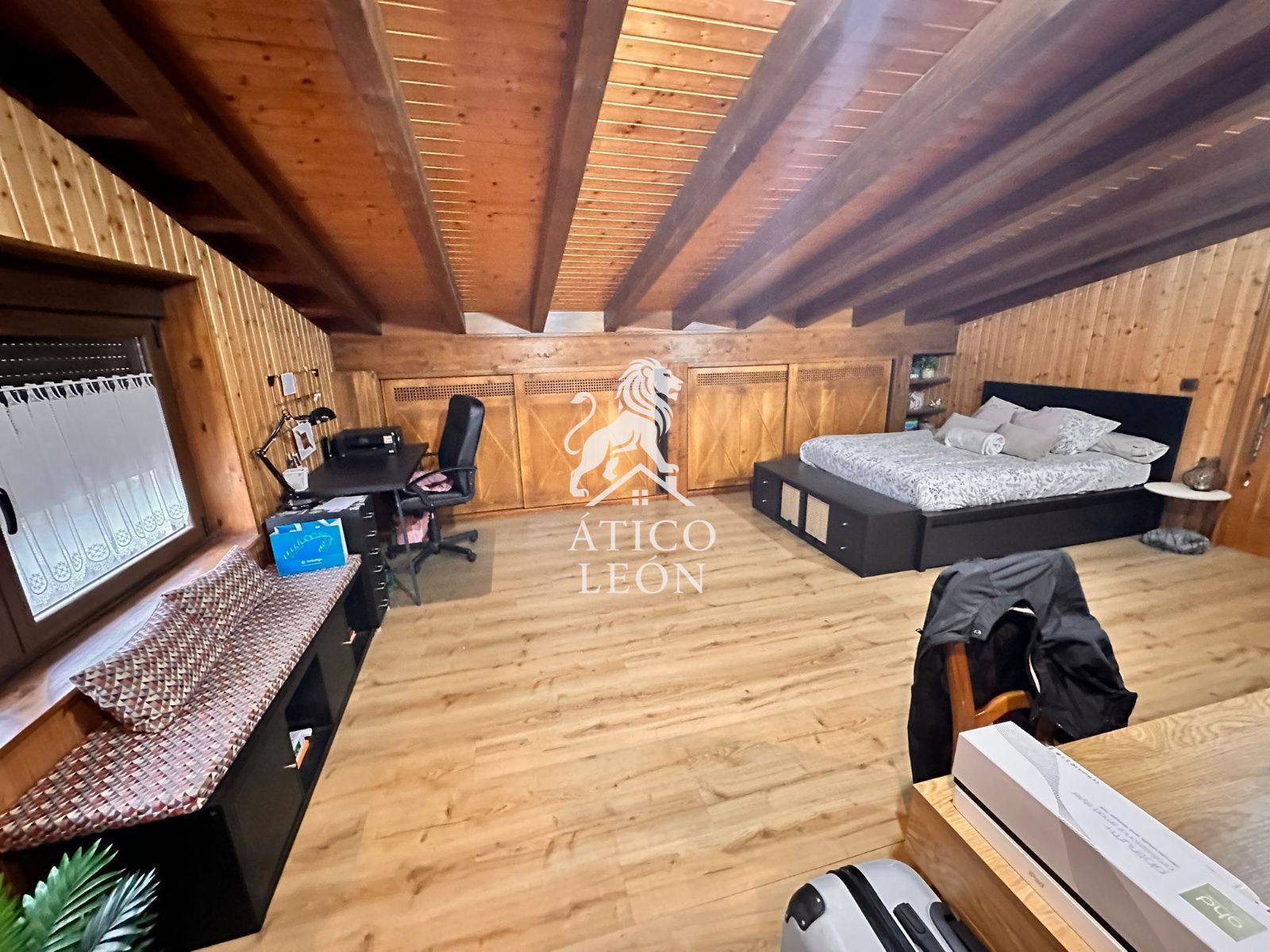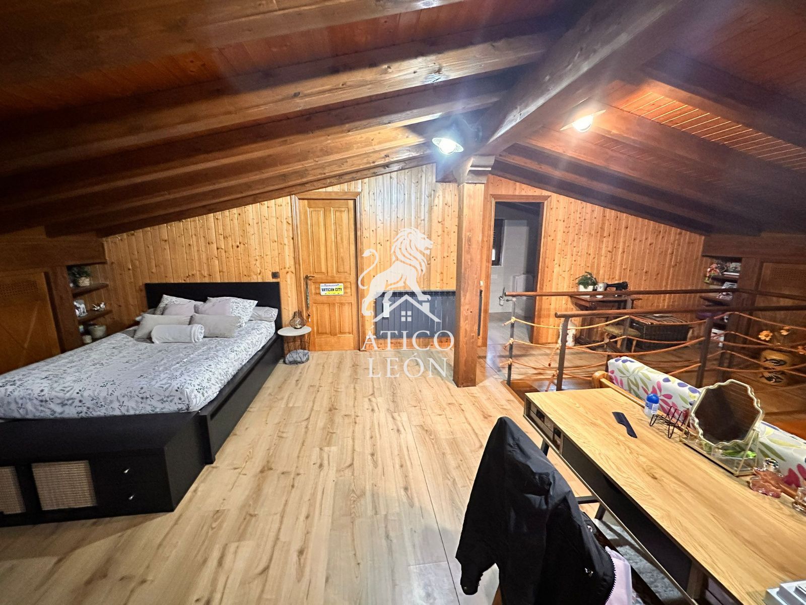 La planta primera alberga un precioso ático tipo loft, muy luminoso y con gran capacidad de almacenaje gracias a sus armarios empotrados, además de un baño completo con plato de ducha grande.